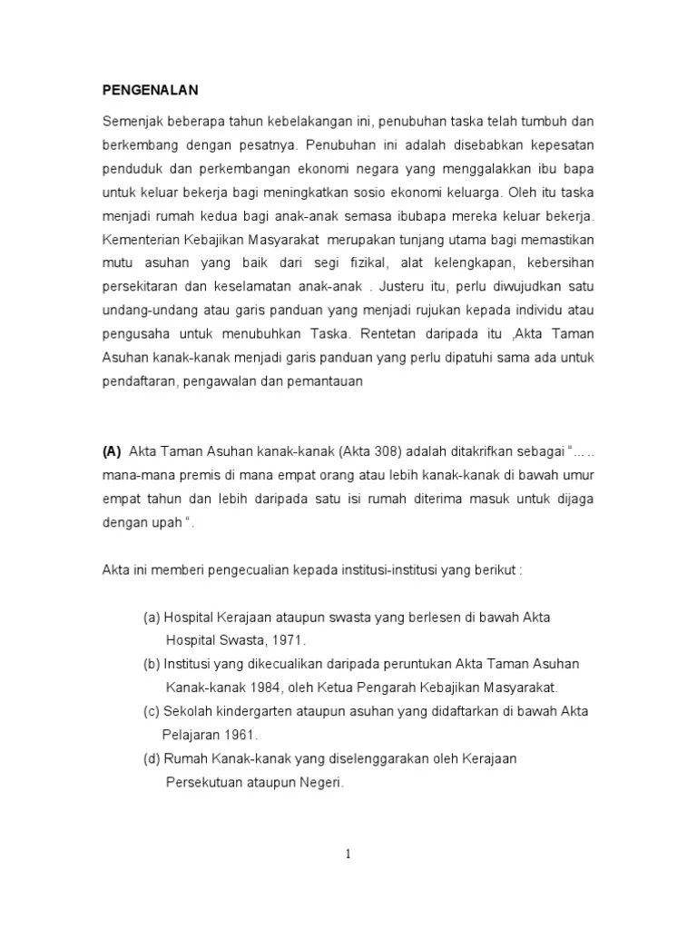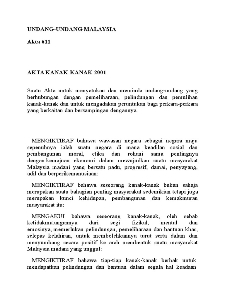 Pakk Kumpulan 2 Pdf Document from demo.vdocuments.net Akta pendidikan pendidikan 1996 adalah merupakan lanjutan dan pembaharuan dari akta pelajaran 1961. Akta ini yang telah dibentangkan dan diluluskan di parlimen pada tahun 2016 yang lalu merupakan satu kejayaan besar dalam usaha membanteras. Ini termasuk penderaan kepada bayi yang mampu menyebabkan sindrom mengoncang bayi. Lihat kes kanagalingam lwn kanagarajah (1982) 1 mlj 264. Penjagaan serta perlindungan daripada ibu bapa/ penjaga atau ditandatangani pada 28 disember negara daripada kemiskinan, 1994. Penggubalan akta baru ini bertujuan untuk menyelaraskan sebarang pertindihan. Mengenakan hukuman denda tidak lebih daripada rm10 000 atau penjara tidak lebih daripada 5 tahun. Mengikut pandangan islam, penjaga dan hadhinah (custody) mempunyai hak dan tanggungjawab yang berbeza.
